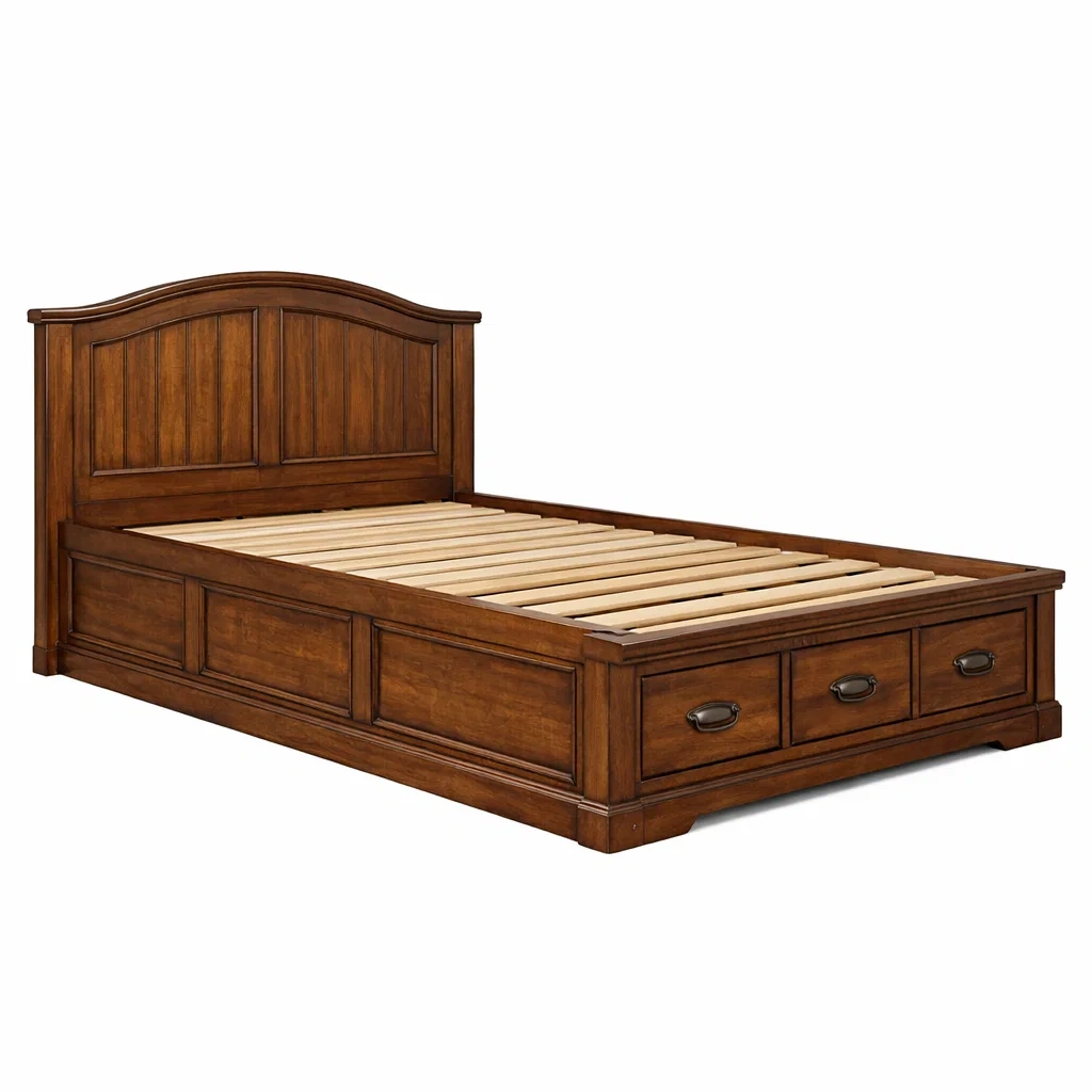 Letto contenitore singolo in legno marrone con cassetti