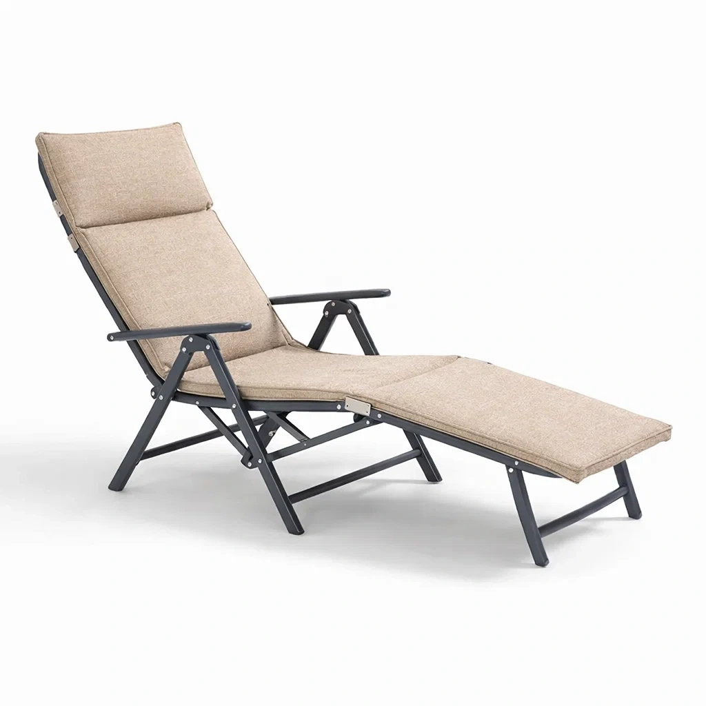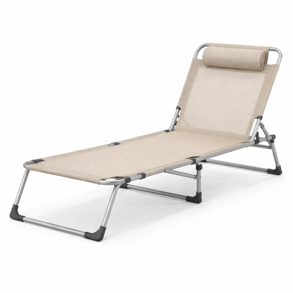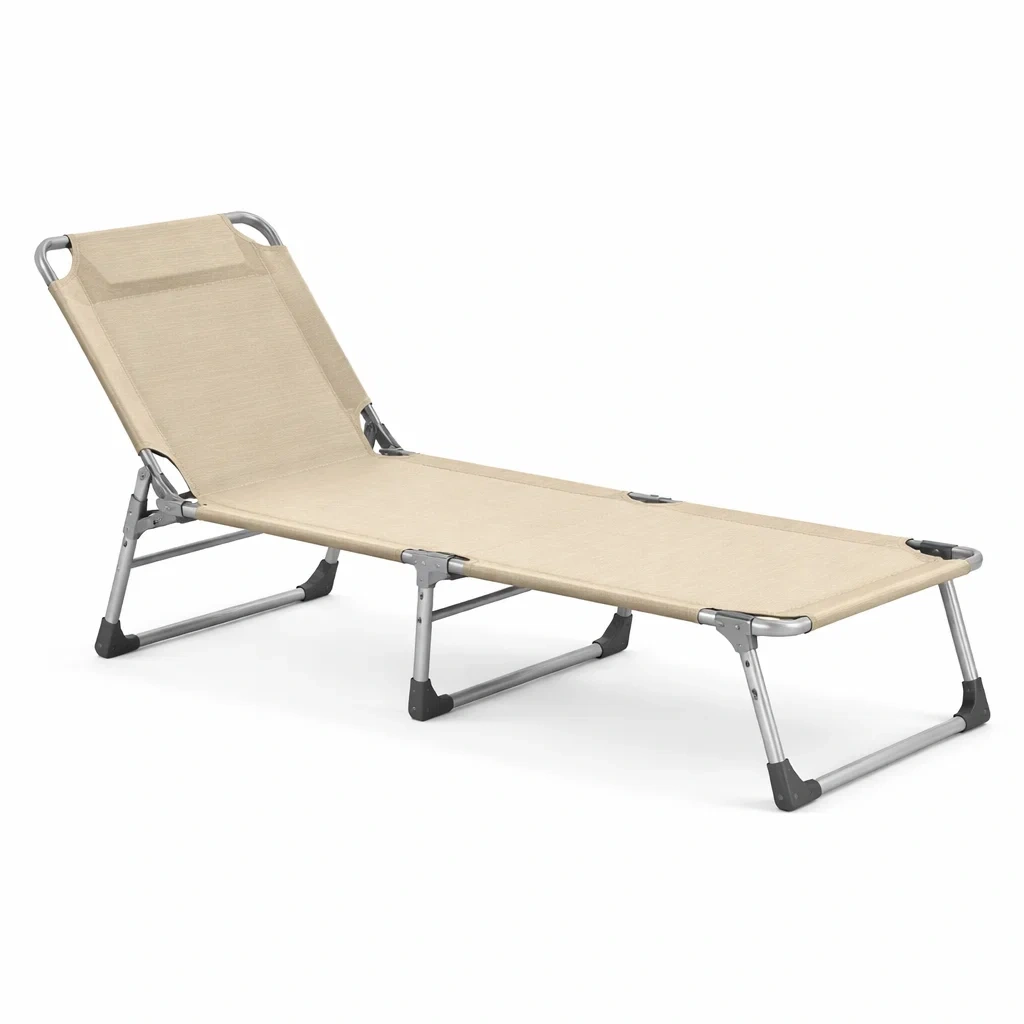 Lettino pieghevole regolabile in metallo e poliestere beige