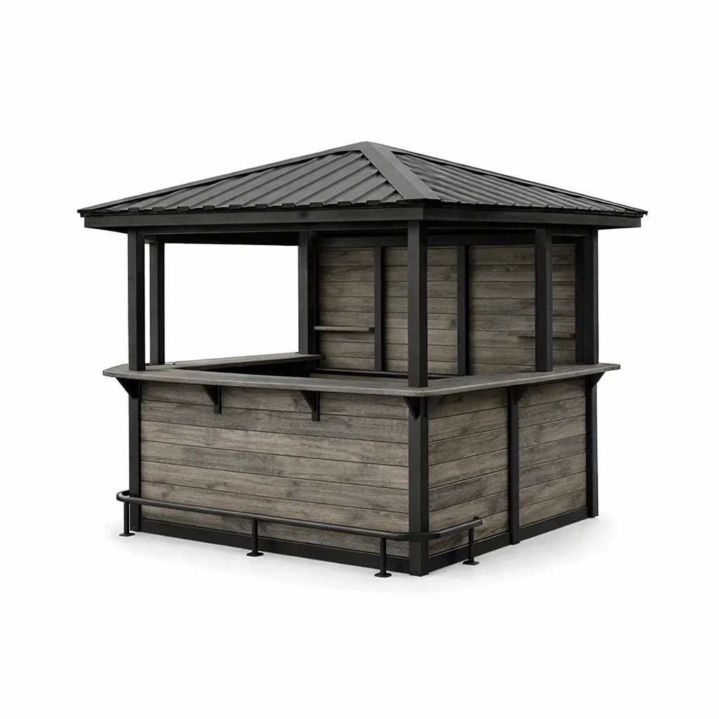 Padiglione bar in metallo e legno grigio nero