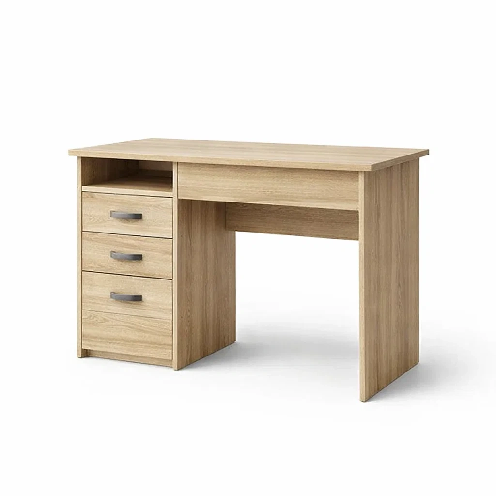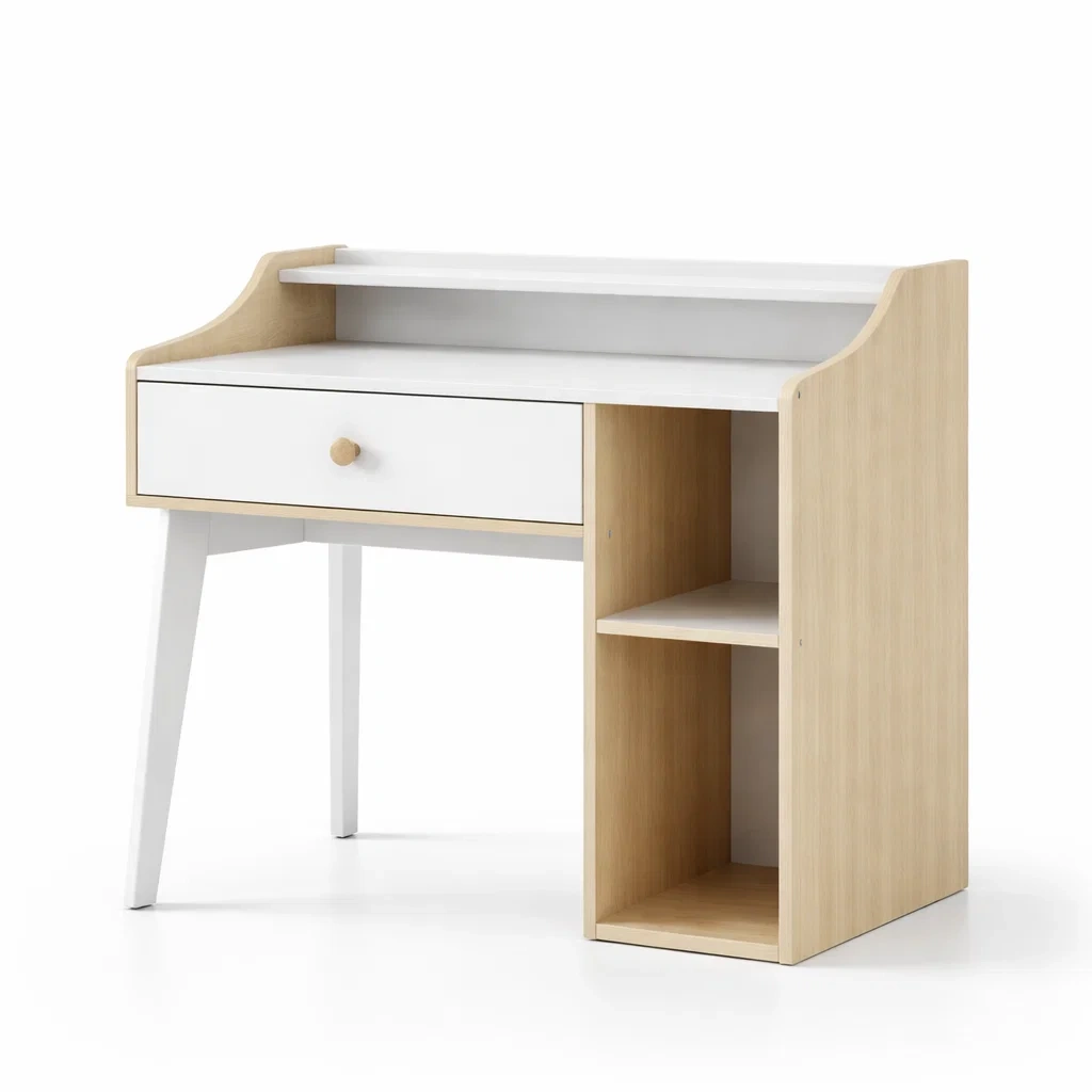 Scrivania in legno mdf laminato bianco e rovere con cassetto e mensole 100x50x75 cm